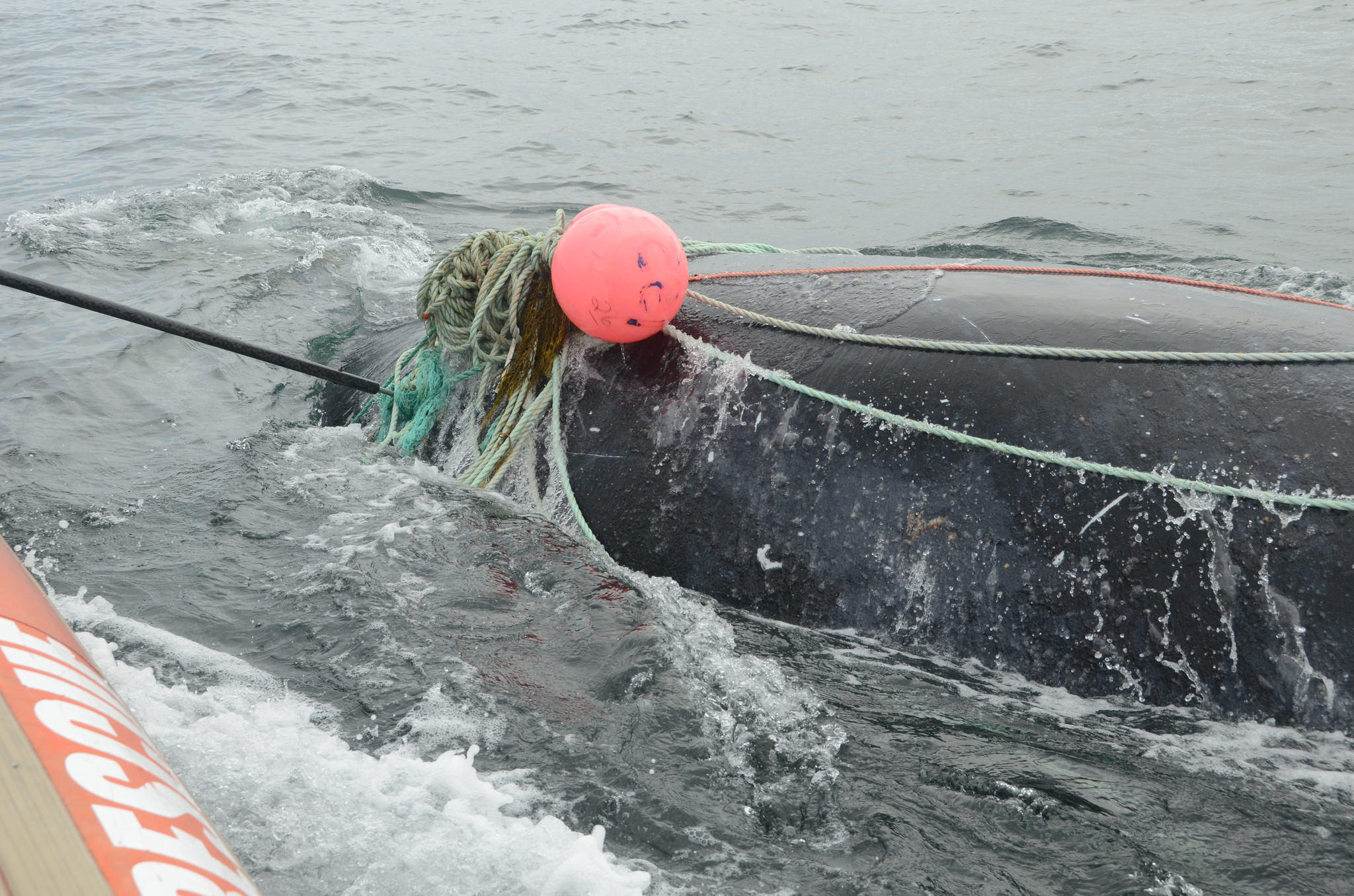 A juvenile male right whale tangled in fishing gear was rescued in August off Campobello Island. Photo courtesy Campobello Whale Rescue.