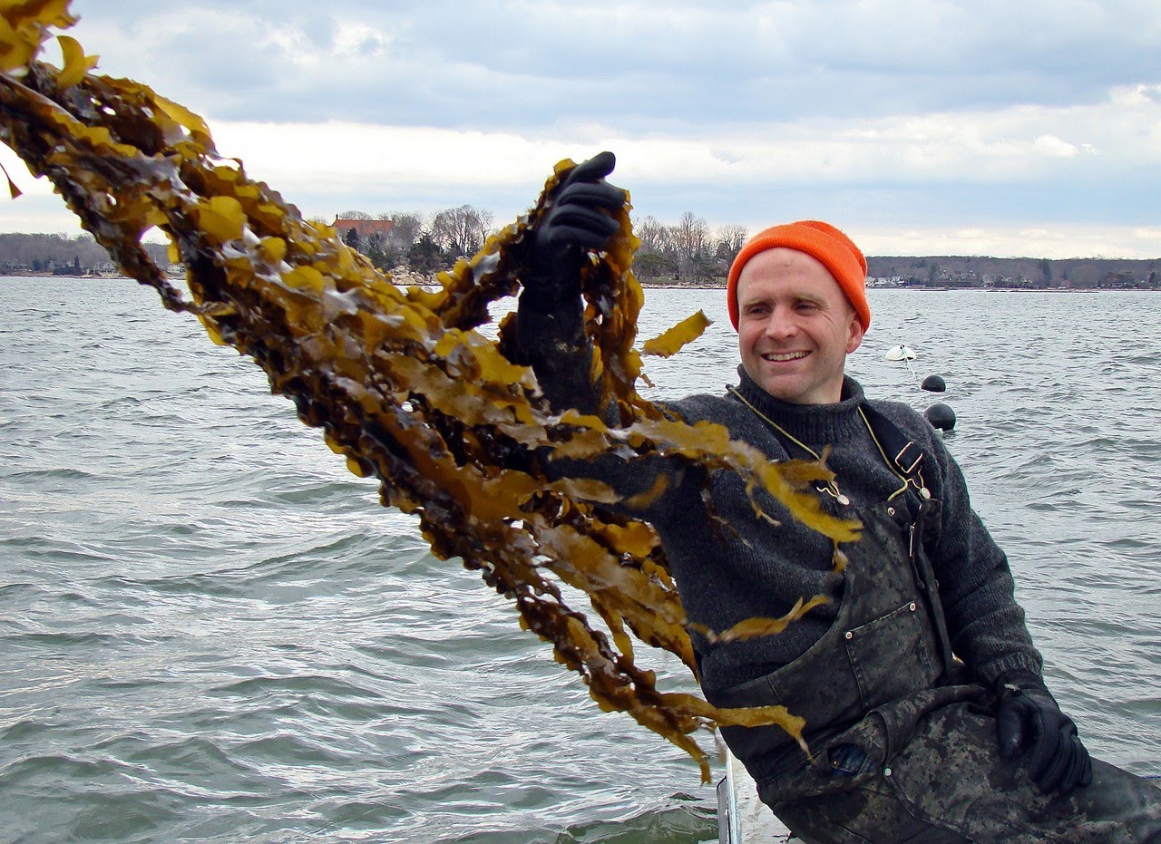 You know, I ended up here in Long Island Sound in, sort of, this full circle of my family. I never expected it. Lived in an Airstream trailer in Guilford for, was supposed to be about six months, it ended up being seven years. Which, uh, the first six months were great, by the way. And so, I started with oysters and I was a terrible farmer. I ran a death camp, right, killing millions of oysters because I didn’t know how to farm. But, what oysters taught me was that if you grow things that don’t want to swim away and you don’t have to feed, it’s a game changer. Because we have all these species that can grow just with nutrients that are in the water, that we have too much of, too much nitrogen, too much carbon, too much phosphorus, and grow with sunlight. It becomes really a simple, elegant and, quite honestly, cheap way to grow food.