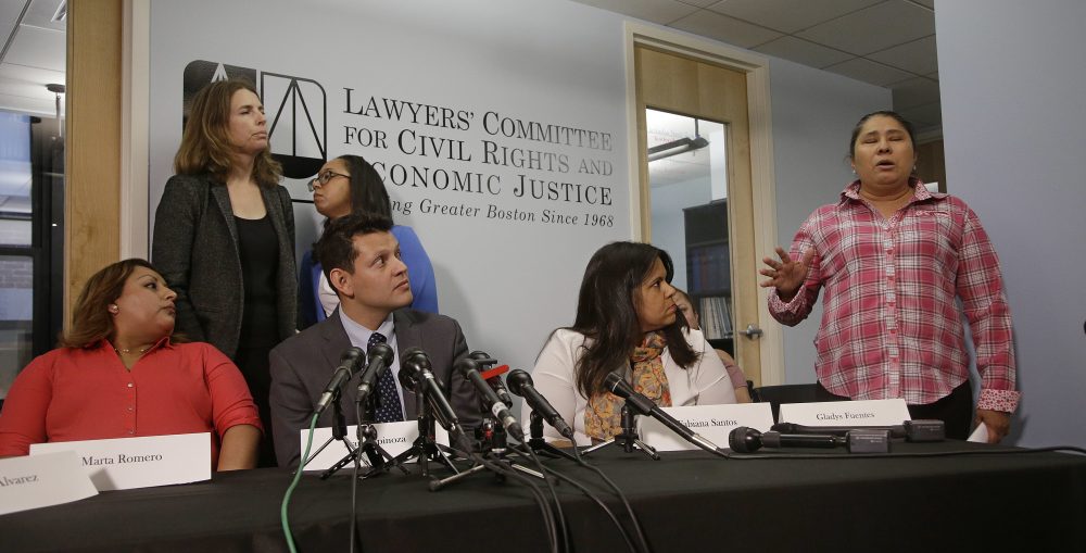 “Hablamos con un gerente, lo conocimos y le dijimos lo que estaba ocurriendo”, dijo en español en una conferencia de prensa en Boston. “E incluso después de eso, no se detuvo. El acoso sexual continuó”.