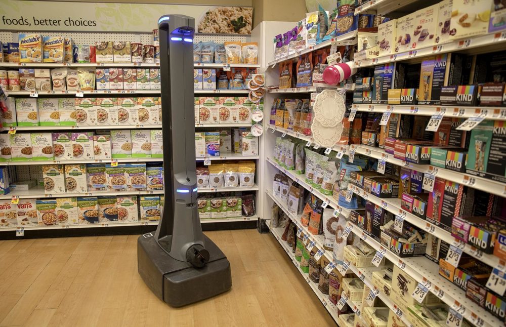 Stop & Shop’s autonomous robot “Marty” patrols a food aisle at the store in Clinton, Conn. Photo by Robin Lubbock for WBUR