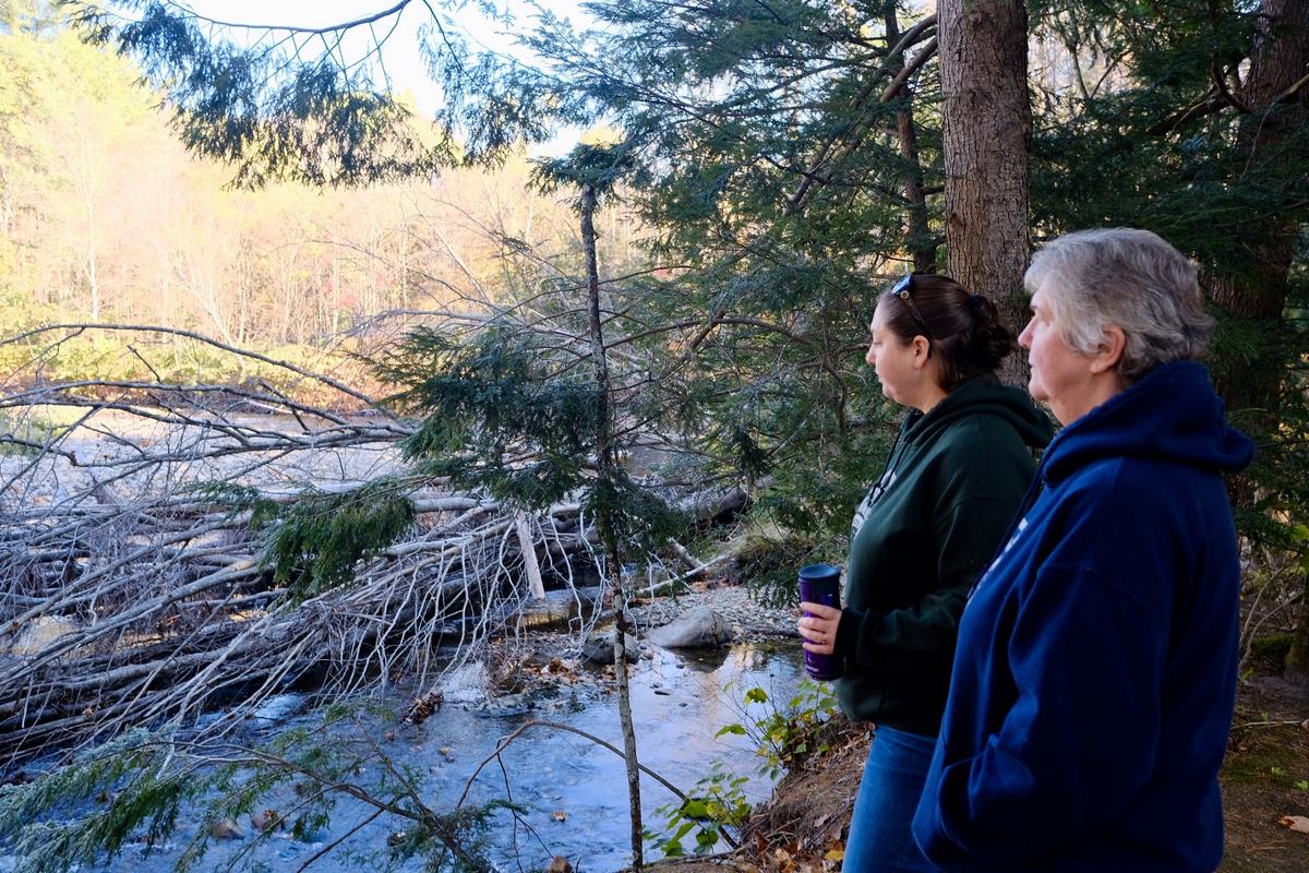 Chelsie Lent and Carole Clarke are co-owners of Scenic View Campground in Warren, NH. The Baker River, which runs along the back of their property, has flooded multiple times in recent years. Photo by Britta Greene for NHPR