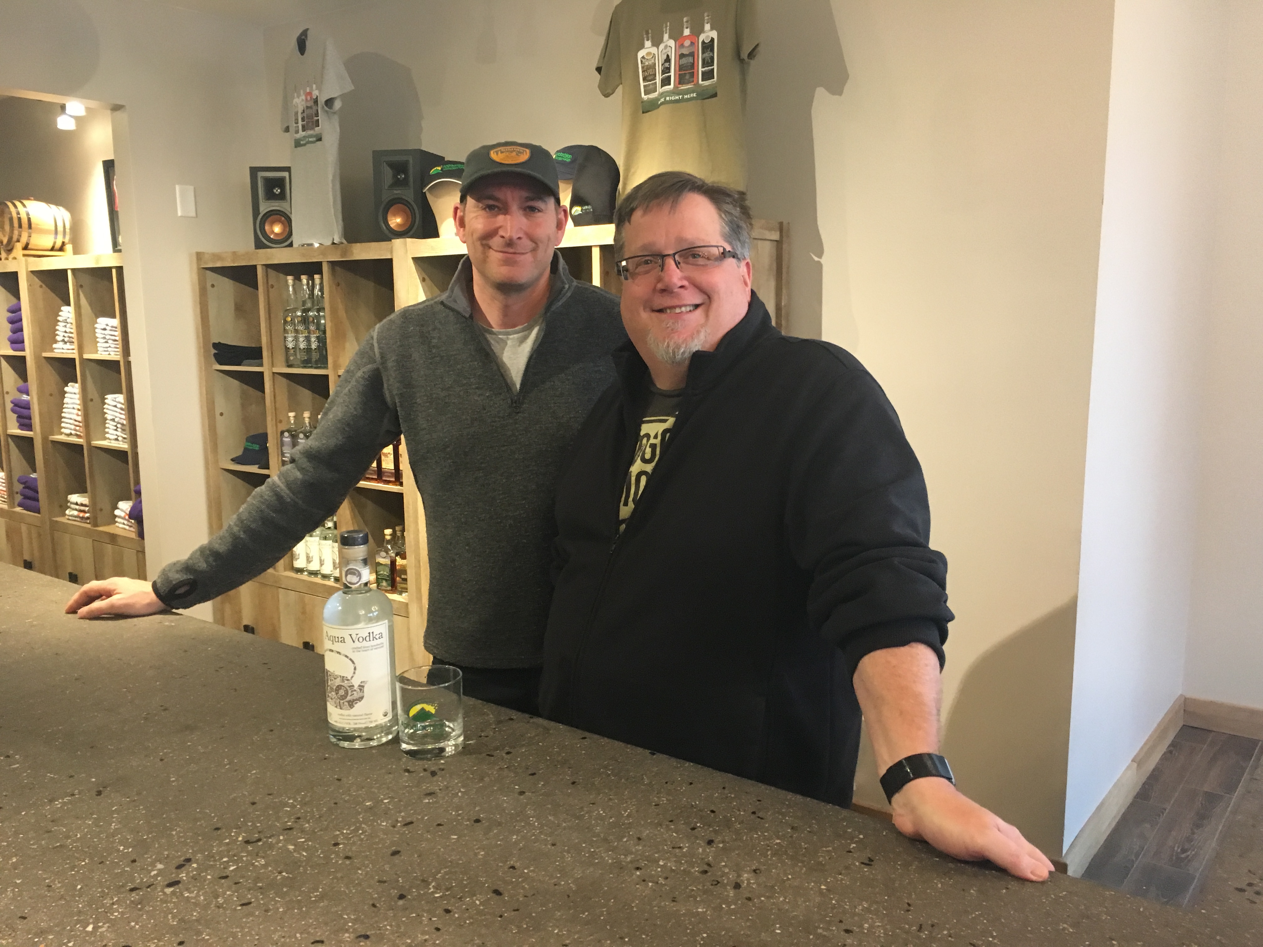 Jeff Weaber (L), founder/CEO of Aqua ViTea, and Lars Hubbard (R), co-owner of Appalachian Gap Distillery have partnered up to make Aqua Vodka: a vodka made with alcohol extracted from kombucha. Photo by Eric Shimelonis