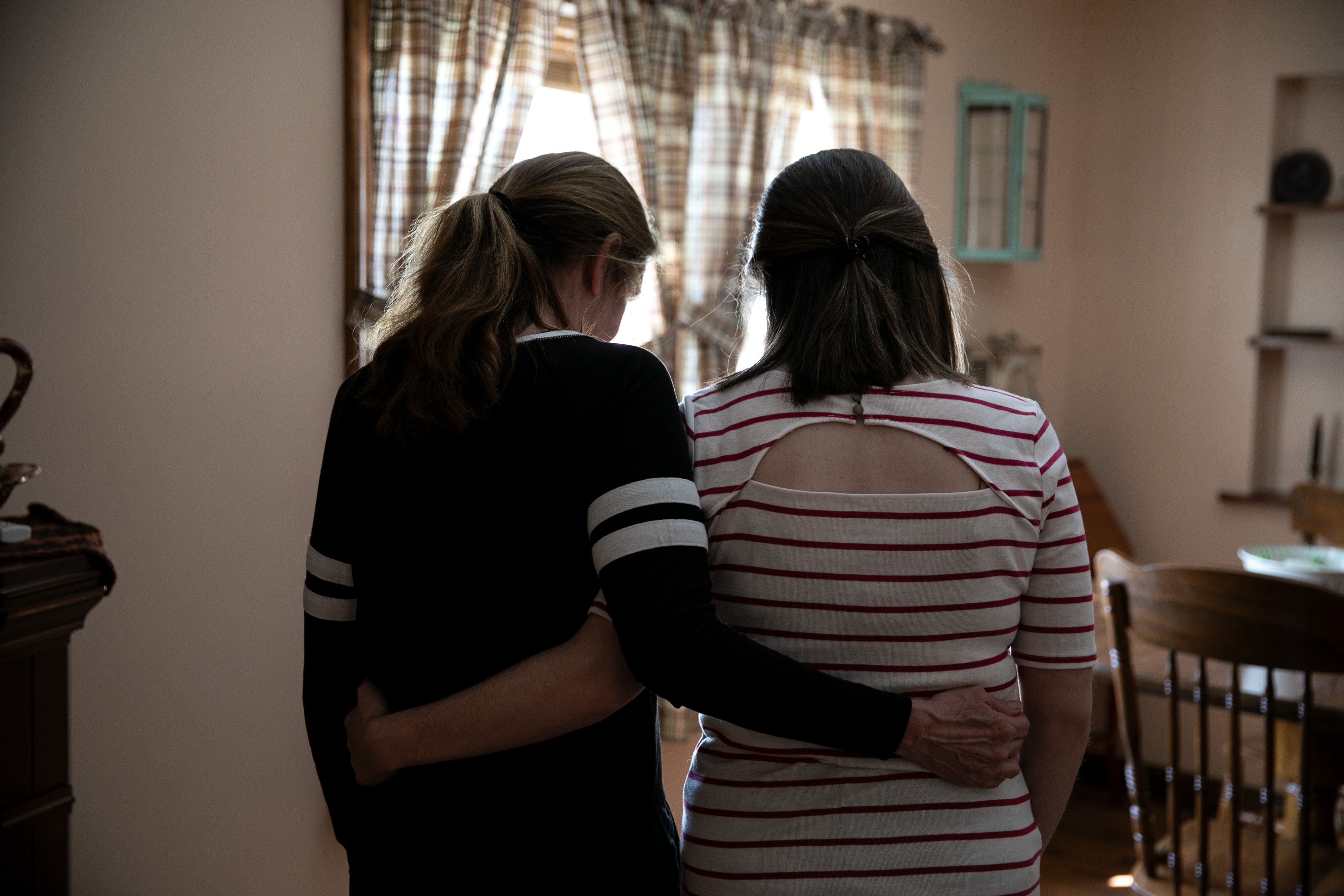 Barbara and Jessica pose for a portrait in the place in the living room where the incident with Elijah happened, on March 11, 2019, in Warwick, Rhode Island. Photo by Kayana Szymczak for ProPublica