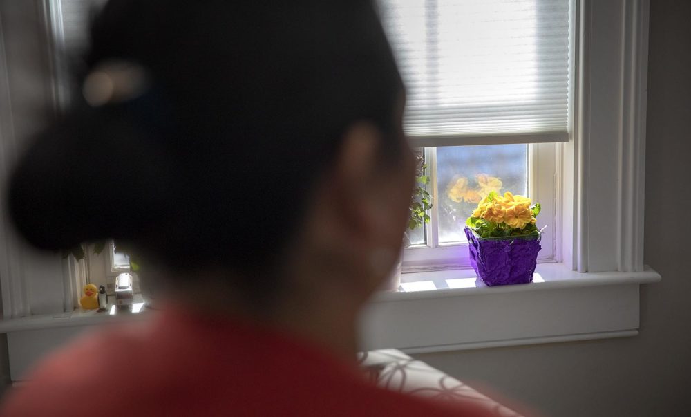 Maria Merida has been living in “sanctuary” in a Boston-area church for more than a year. She has a final order of removal back to her native Guatemala but is hoping to apply for asylum to stay in the U.S. She says she rarely leaves the confines of the church. Photo by Robin Lubbock for WBUR