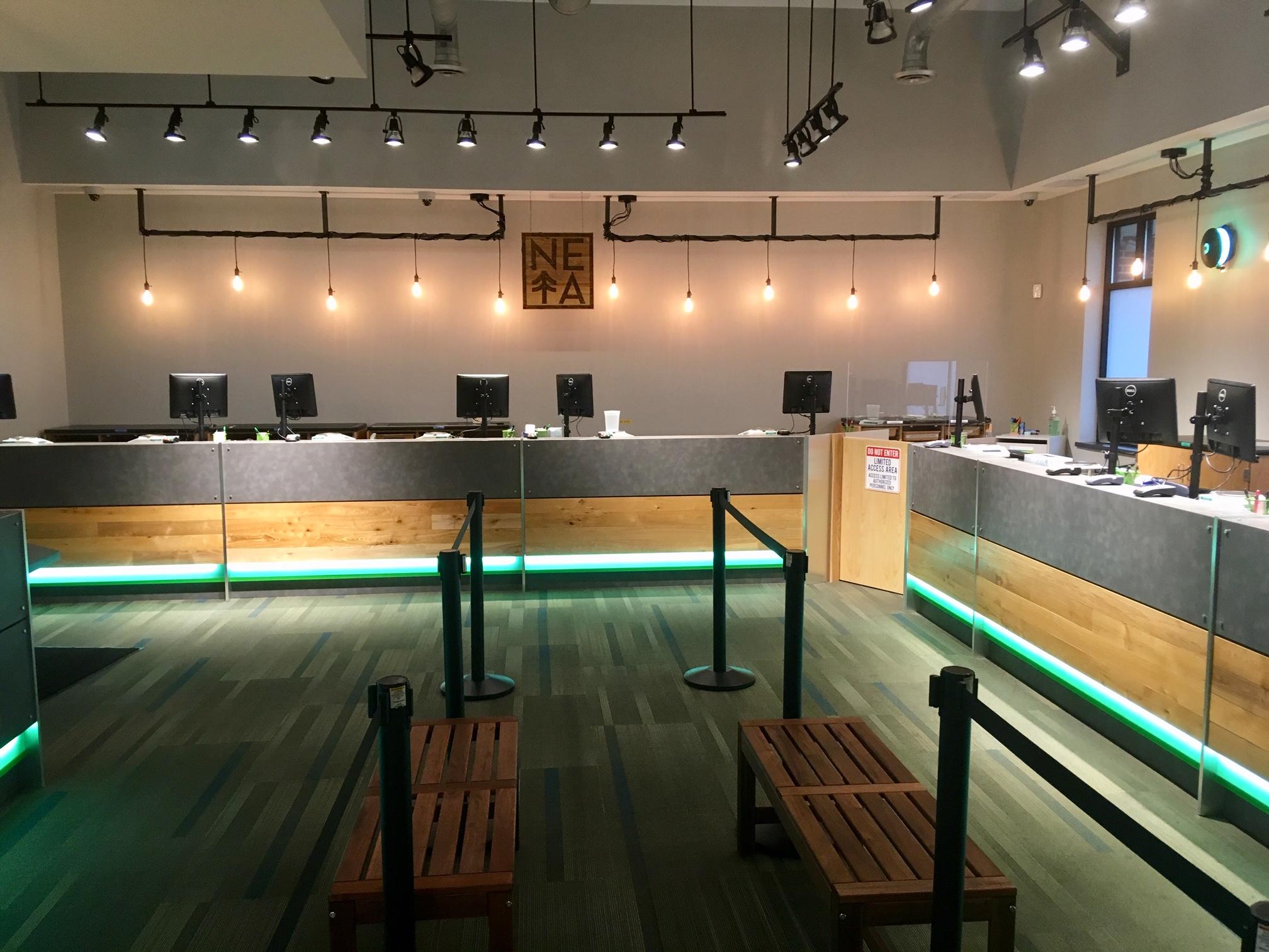 The interior of New England Treatment Access, looking toward the new retail sales stations. Photo by Peter Brown for NETA