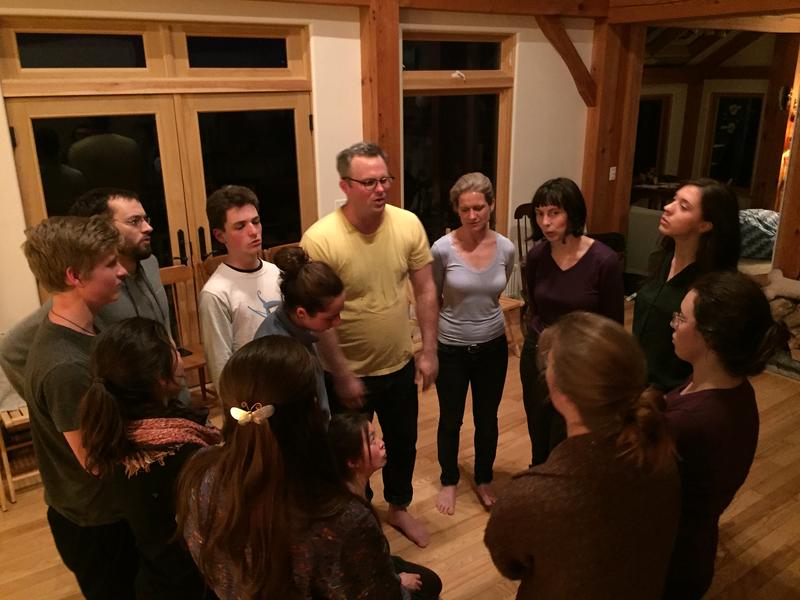 At a private home in Northport, Bennett Konesni is teaching a sea chantey to a group of about ten singers.