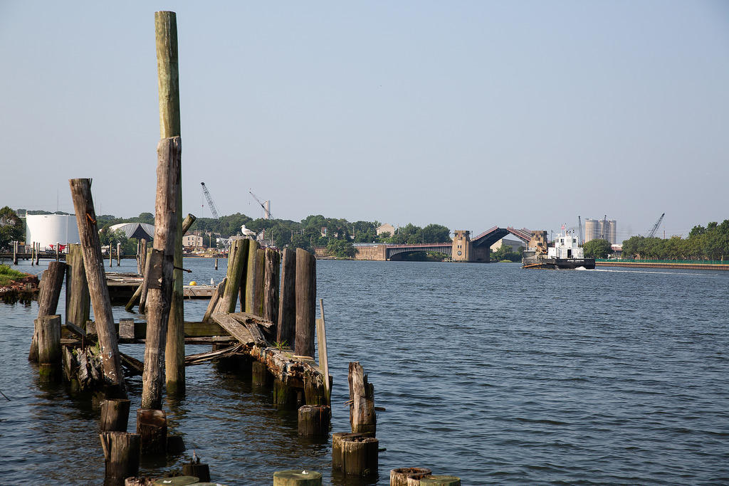 Oysterman Jay Fairty’s radioed a morning call to raise the Ferry Street Bridge (seen in the distance). Fairty said the Quinnipiac River was good for business. “There’s no better spot for oystering,” Fairty said. “A lot of it’s the water quality. The salinity. The food supply, everything is good here.” Photo by Ryan Caron King for Connecticut Public Radio