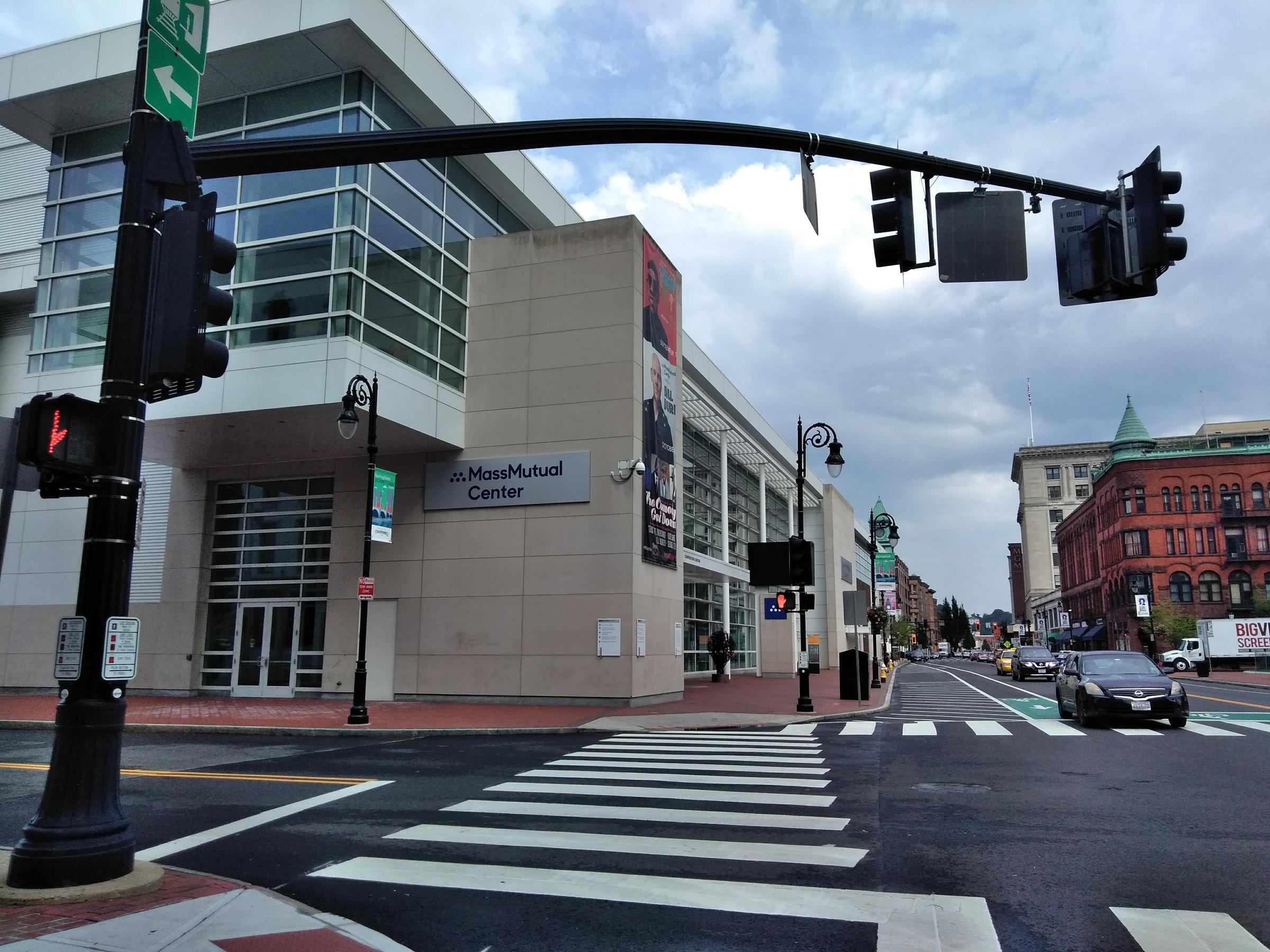 On Main Street in Springfield, Massachusetts, MGM’s resort casino is just south of the MassMutual Center where Steve Wonder performs September 1. Photo by Jill Kaufman for NEPR