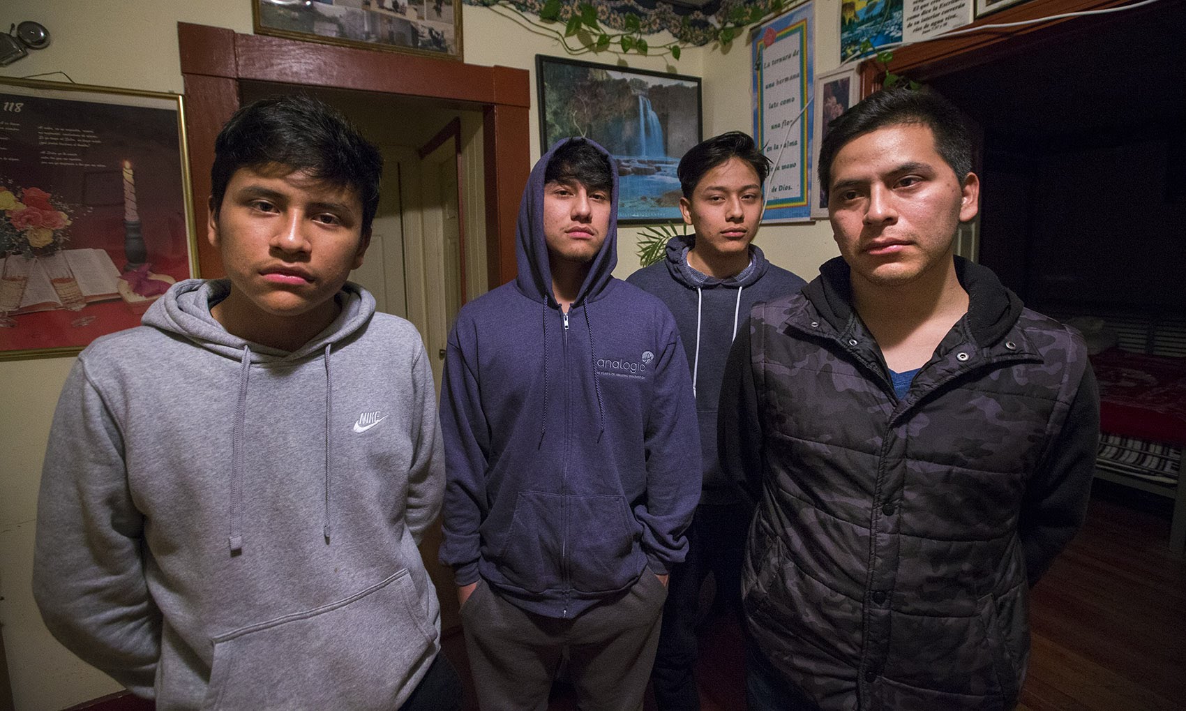 - Isidro Macario, 27 right, wes brought here as a young child from Guatamala is facing deportation potentially making him leave behind the rest of his family, (l-r) Saul, 16, Anthony, 18 and Erwin, 21, who were born in the United States. (Jesse Costa/WBUR)
