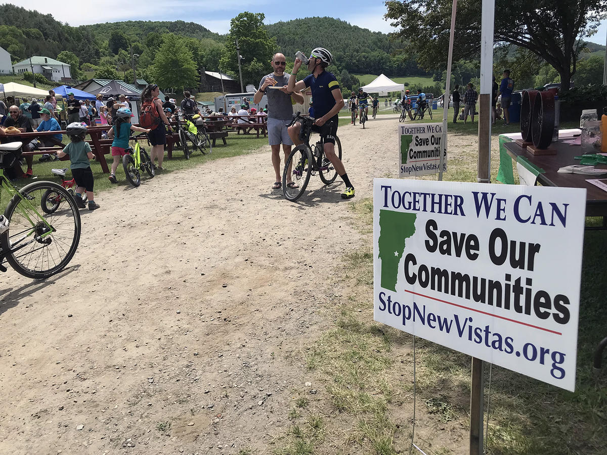 More than 200 riders turned out in early June for a fundraiser bike ride through Tunbridge and Strafford put on by the Alliance for Vermont Communities to stop NewVistas. Photo by Angela Evancie for VPR