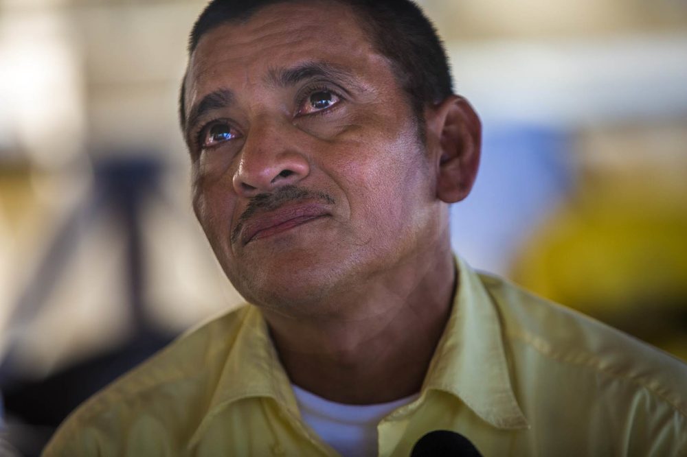 Jose Hector Galvez eyes fill with tears as he talks about his 16-year-old daughter still being detained in the U.S. after they were caught crossing the border earlier this summer. Photo by Jesse Costa for WBUR