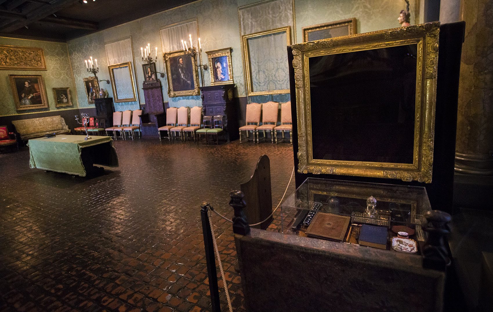 Photo at the top of the page: The Isabella Stewart Gardner Museum’s Dutch Room, where thieves stole three Rembrandts, a Vermeer, a painting by Govaert Flinck and an ancient Chinese beaker. Photo by Jesse Costa for WBUR