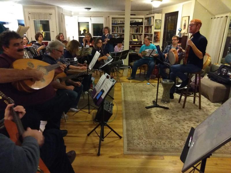Members of the Pioneer Valley Arabic Music Ensemble, rehearsing in Northampton, Massachusetts. Photo by Jill Kaufman for NEPR