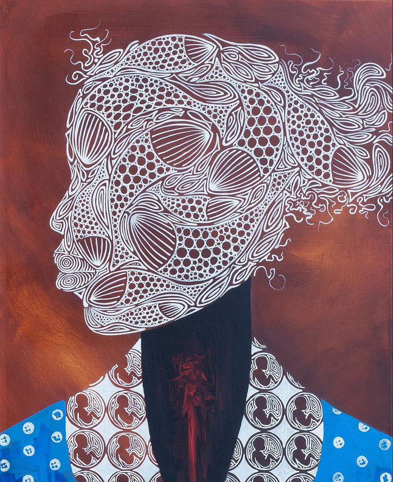 Minter has created work that he says is about Malaga Island and the separation of interracial families at the hands of the state. This is a close up of the work. Courtesy of Daniel Minter