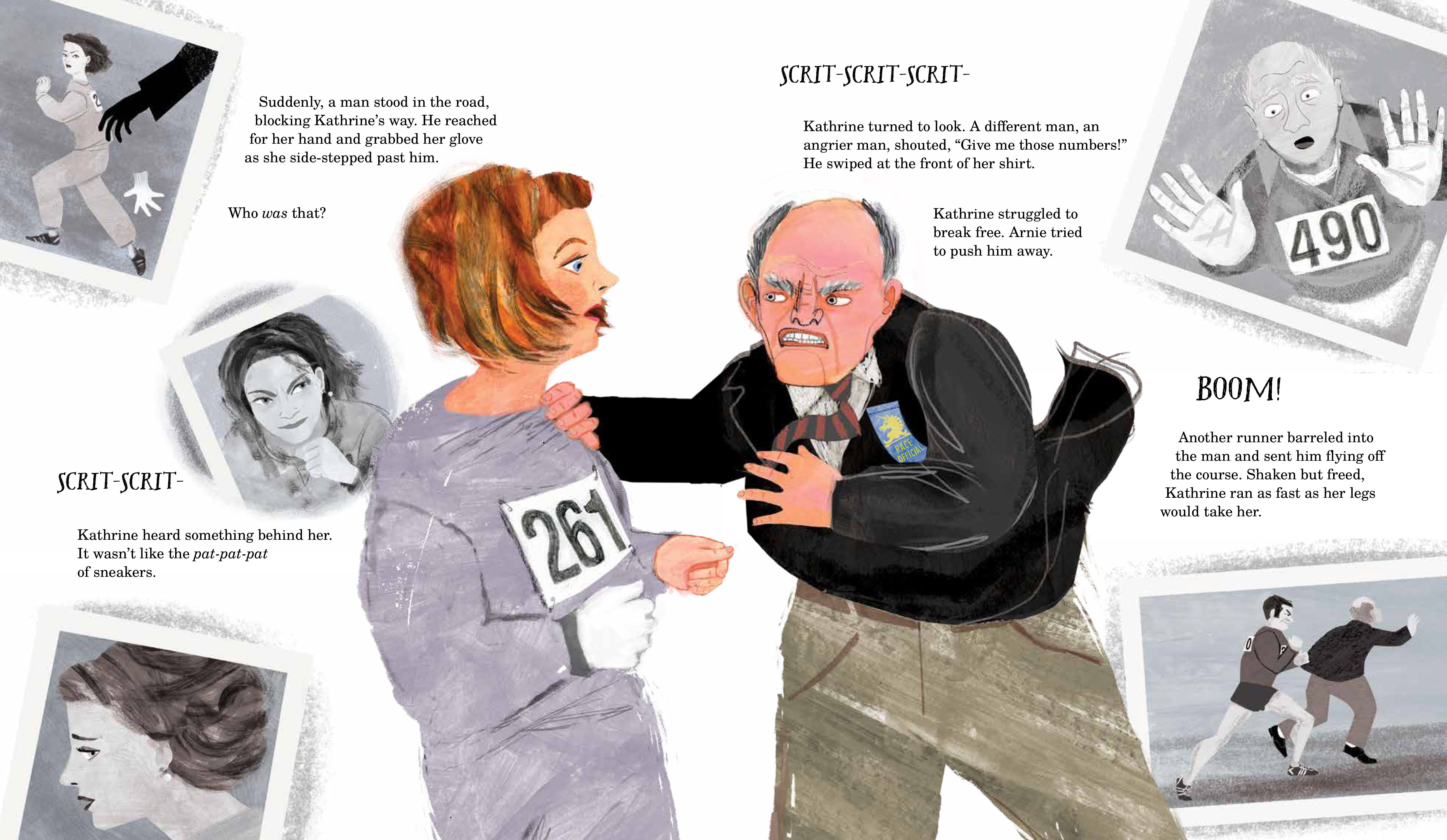 Photo at the top of the page: An illustration by Ellen Rooney for Her Fearless Run: Kathrine Switzer’s Historic Boston Marathon by Kim Chaffee