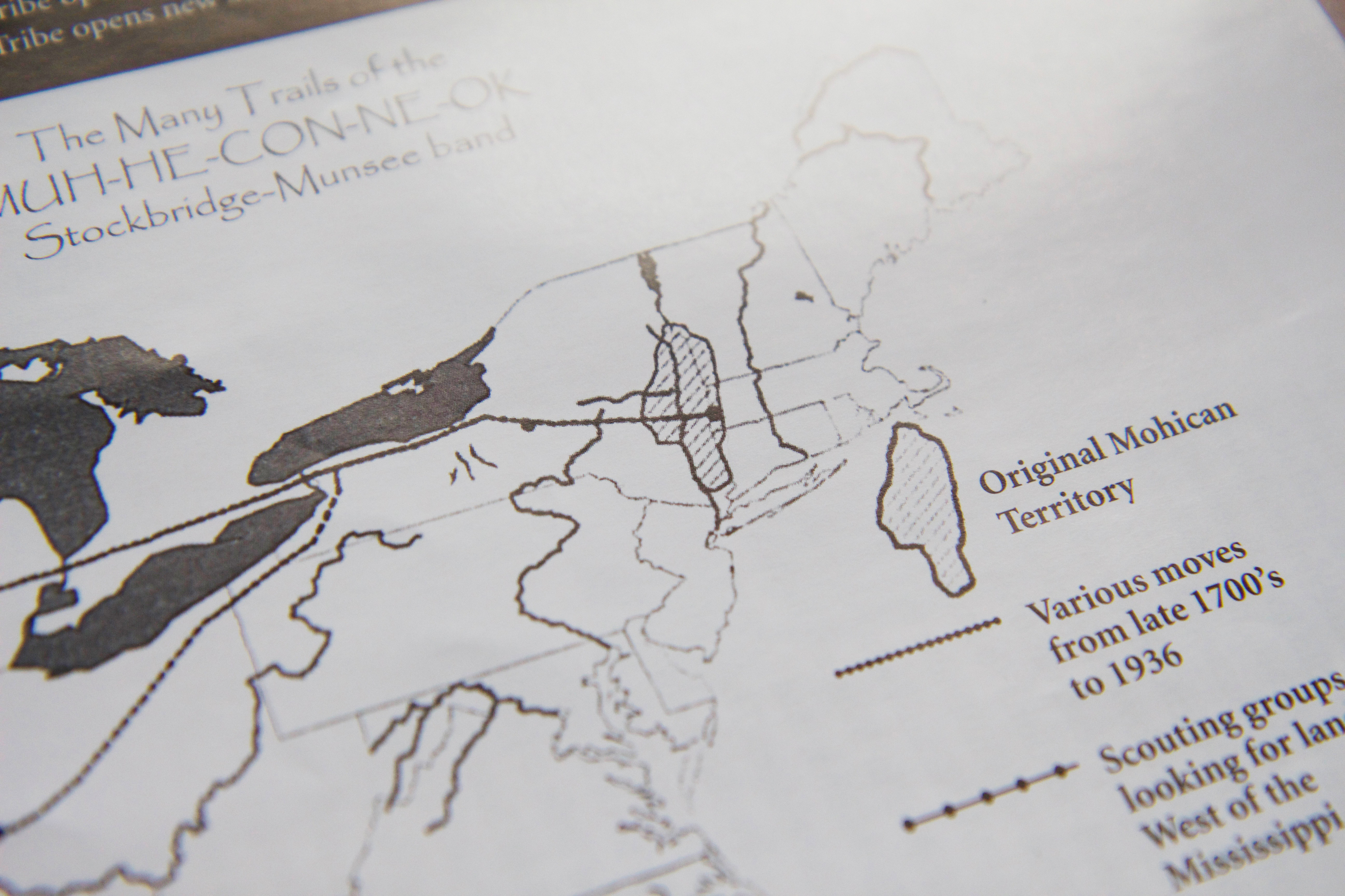 - A map created by the Stockbridge-Munsee Band shows Mohican homelands along the Mahicannituck River, later renamed the Hudson River. Before they were forced out by European colonizers, the Mohicans had territory extending into the Berkshire County part of Massachusetts, including the western-most part of what is now called the Mohawk Trail. Photo by Elodie Reed