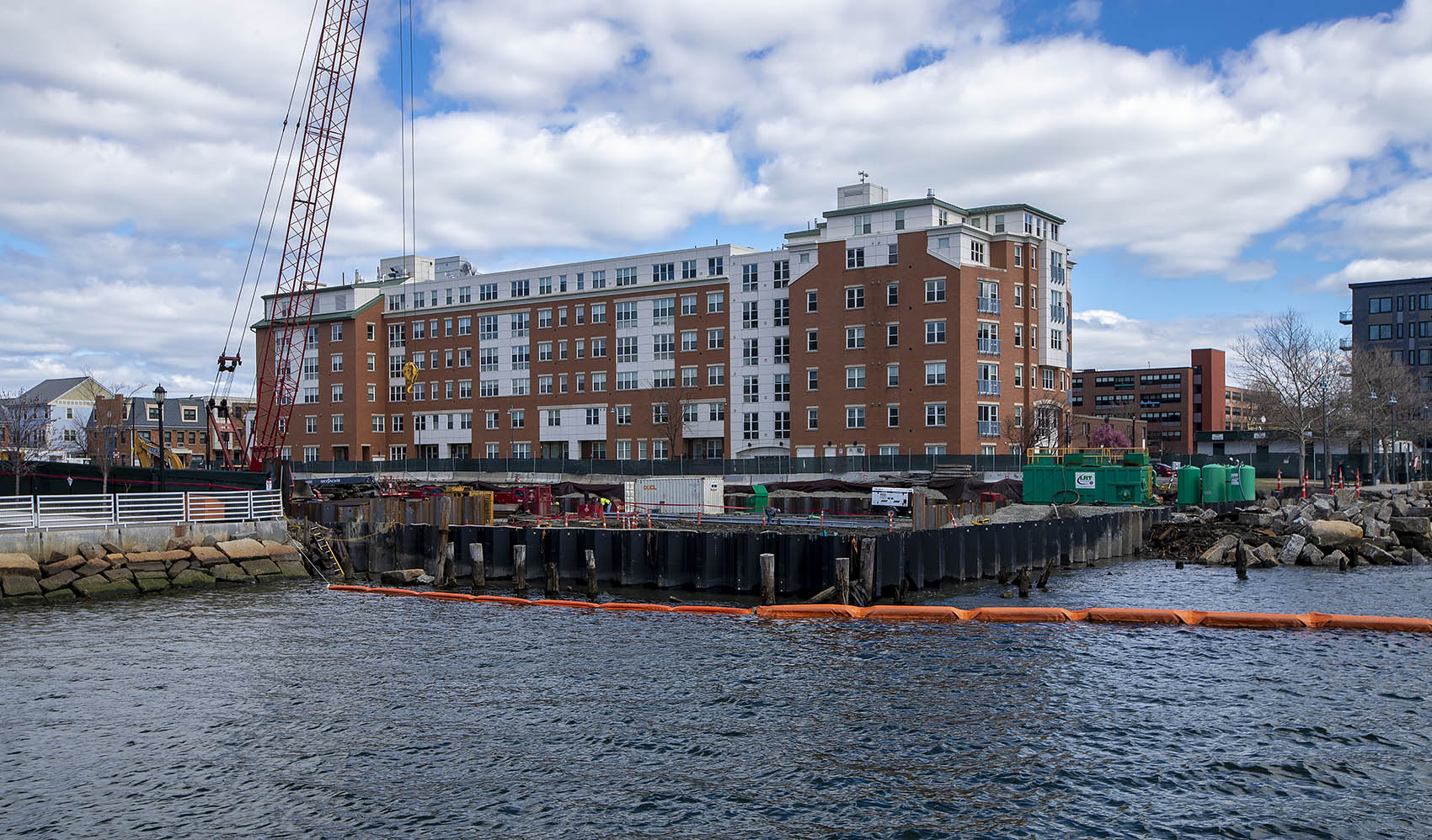 The 99 Sumner Street construction site in East Boston sits between LoPresti Park and Carlton Wharf. Photo by Jesse Costa for WBUR