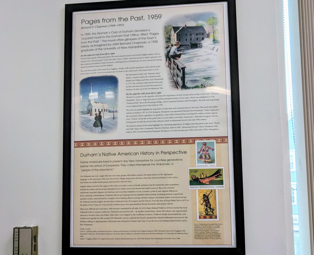 The interpretive text created for the mural in the Durham, NH post office. Photo by Jason Moon for NHPR
