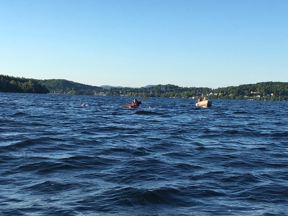 Vera Rivard, 14, accompanied by her mother Darcie in a kayak, and her father and sister in a boat, completed the marathon swim in 16 hours, 24 minutes. Photo by John Dillon for VPR