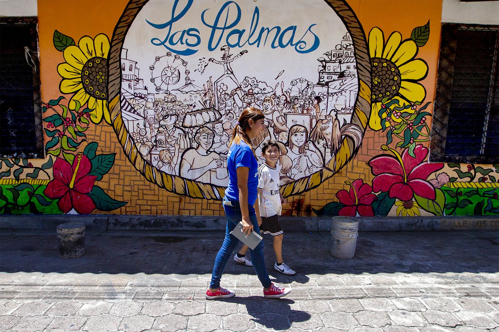 Photo at the top of the page: A Glasswing International staff member walks through town with a young boy who lives in Las Palmas. Photo by Jesse Costa for WBUR