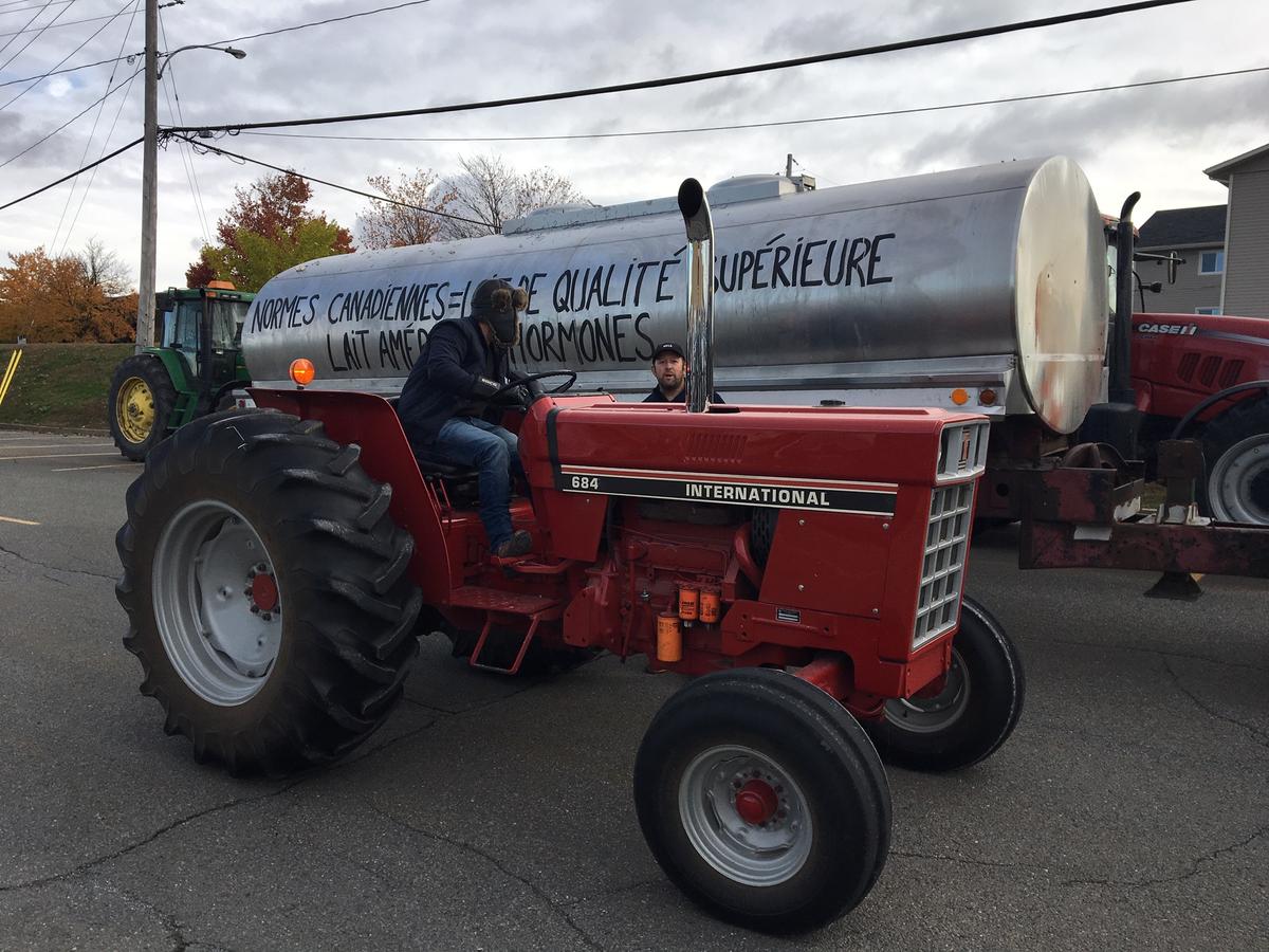 Farmers led a tractor parade down the streets of Granby, Quebec to protest the new trade deal. Photo by John Dillon for VPR