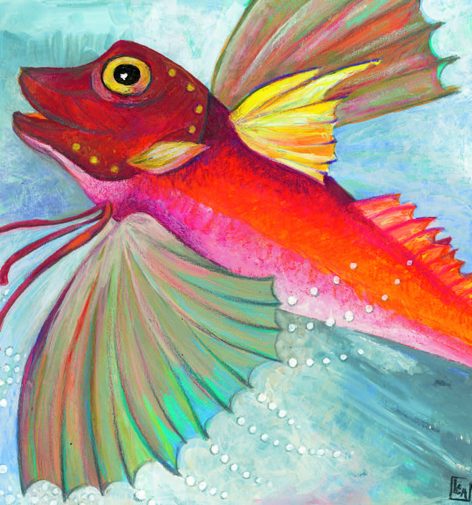 Photo at the top of the page: An illustration of a Sea Robin from the Simmering the Sea cookbook. Illustration by Léa Tirmant-Desoyen, courtesy of Eating with the Ecosystem