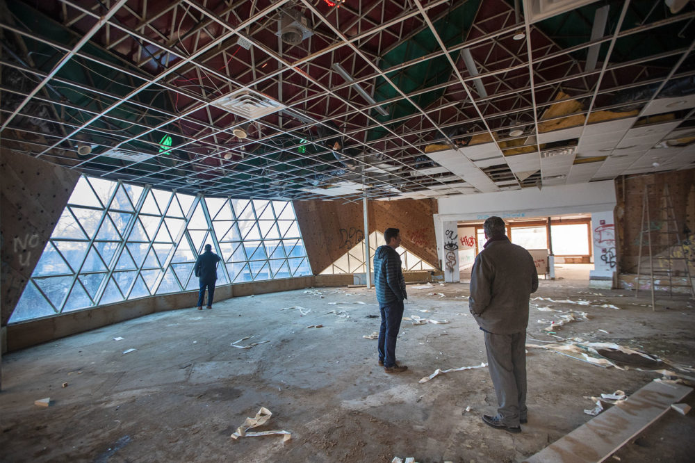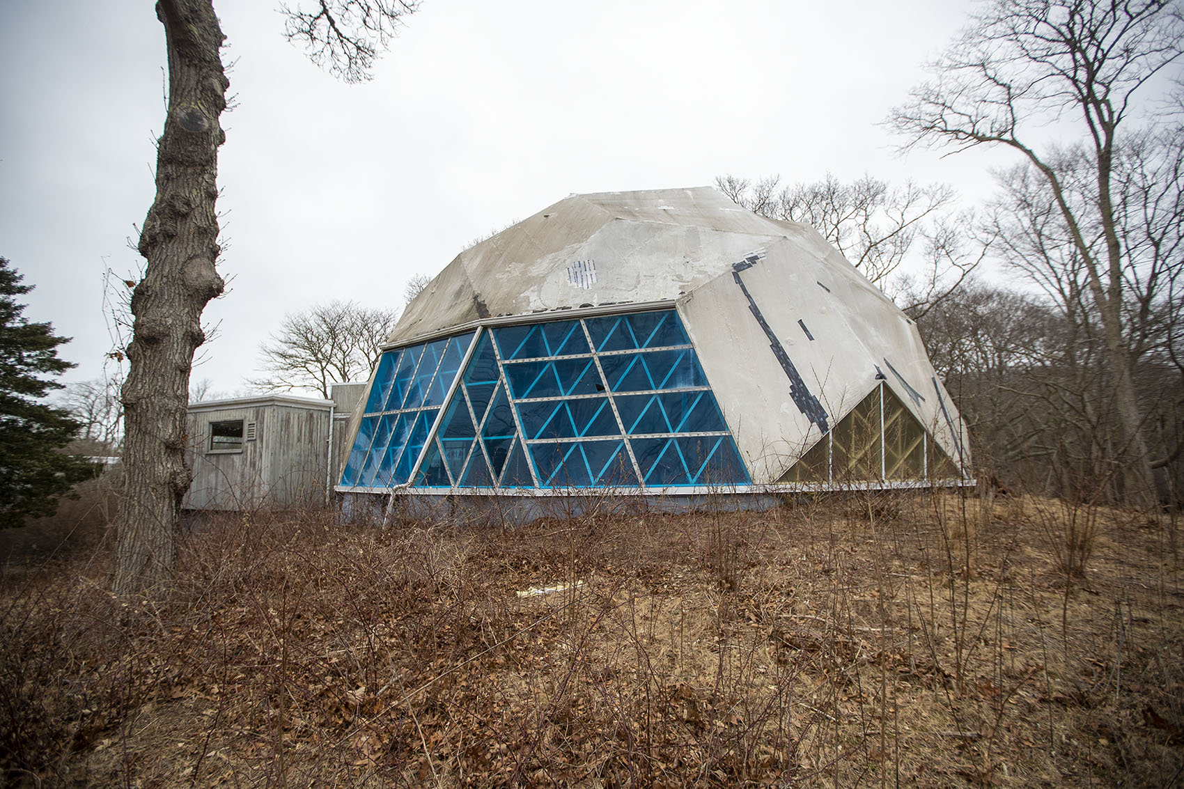 The Dome in Woods Hole, the oldest surviving geodesic dome in the world built by Buckminster Fuller, is in a state of total disrepair. Photo by Jesse Costa for WBUR