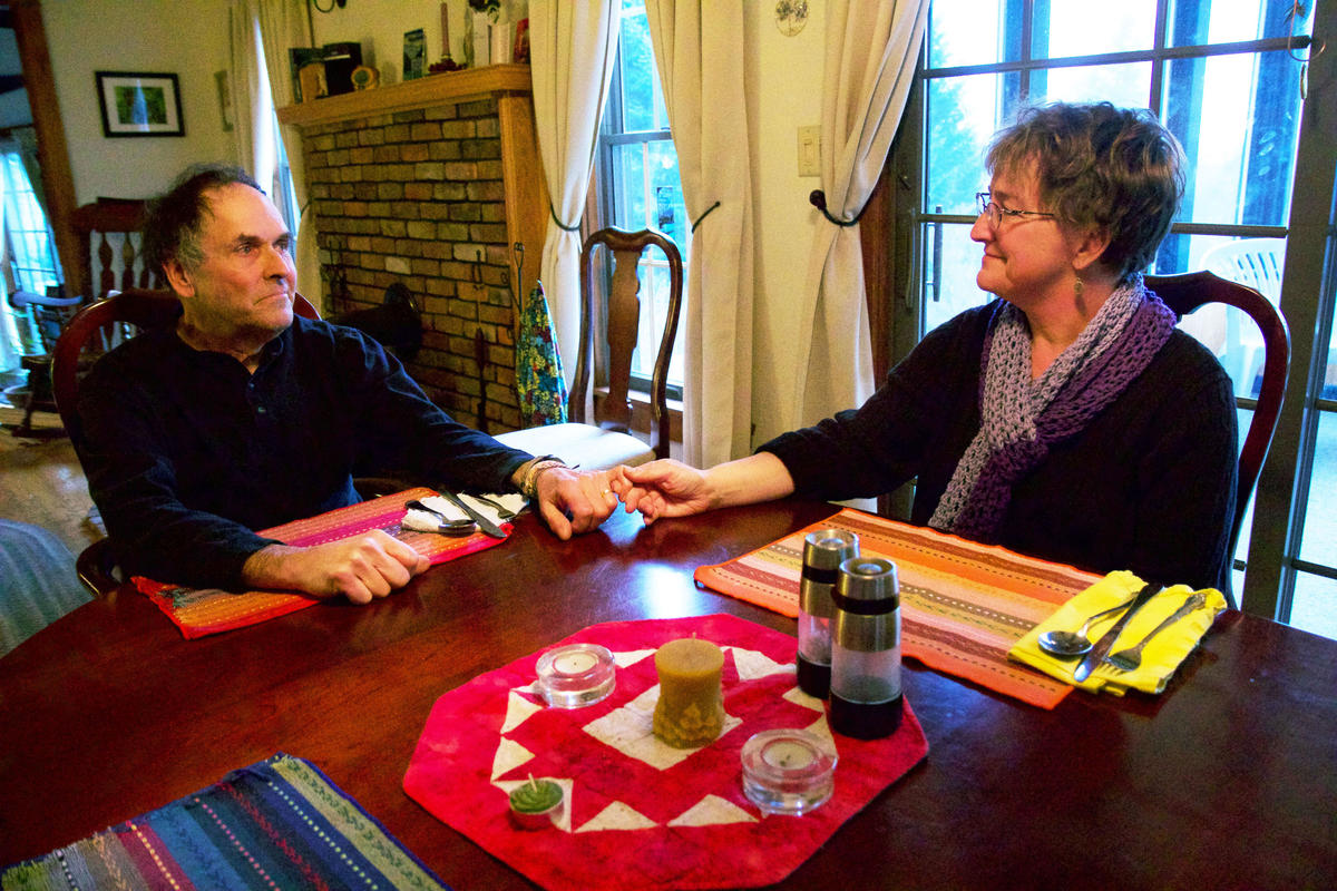 - Kris and Paul Francoeur sit for a portrait in their Leicester home. They raised their son, Sam, in the same house, which Paul built. Before Sam died of an accidental overdose in 2013, the couple said their son was big on traditions, including coming home every Sunday to eat dinner at this table. (Elodie Reed / Vermont Public Radio)