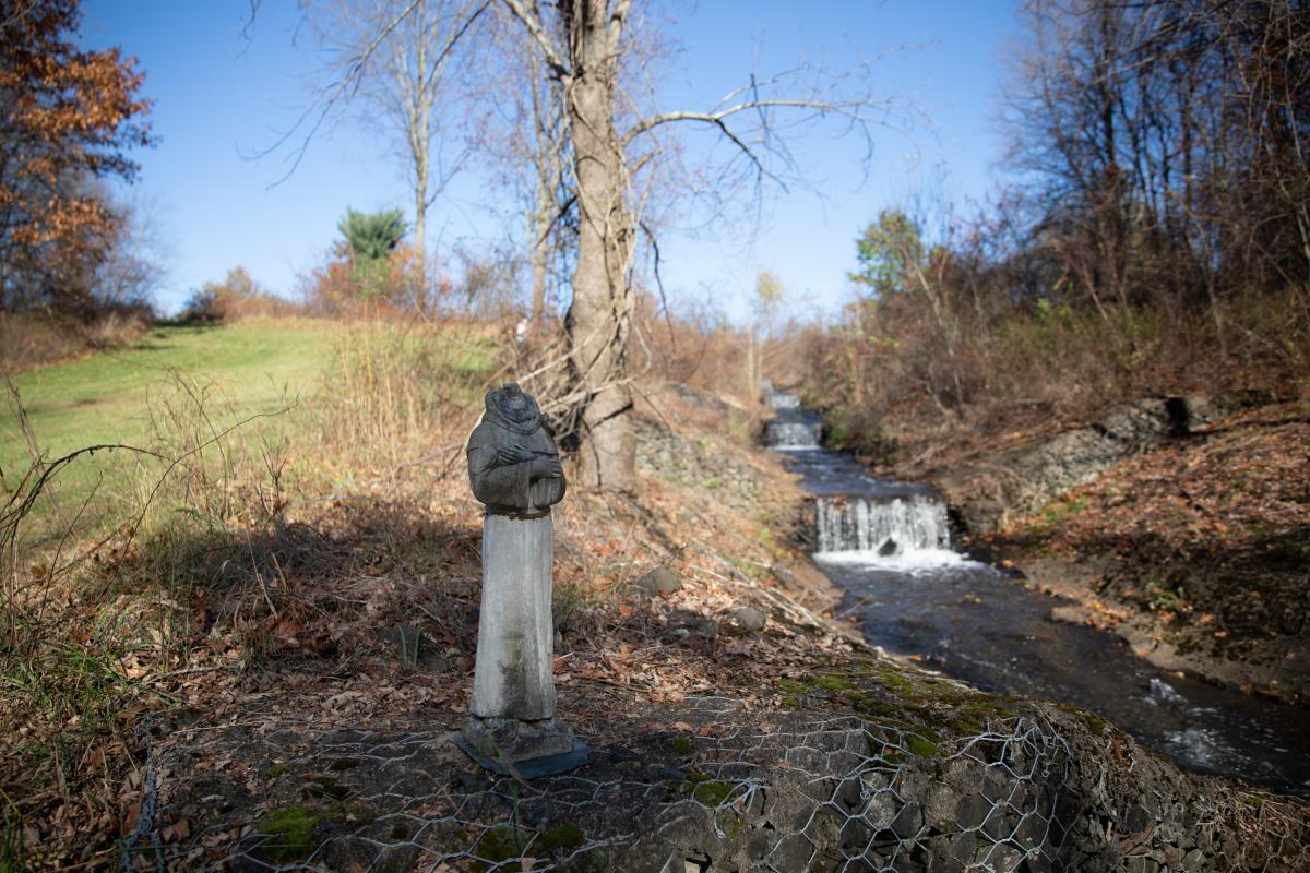 - The brook behind Patty Abramowicz’s house in Windsor, on Nov. 2, after the foam was removed. (Patrick Skahill/Connecticut Public Radio)