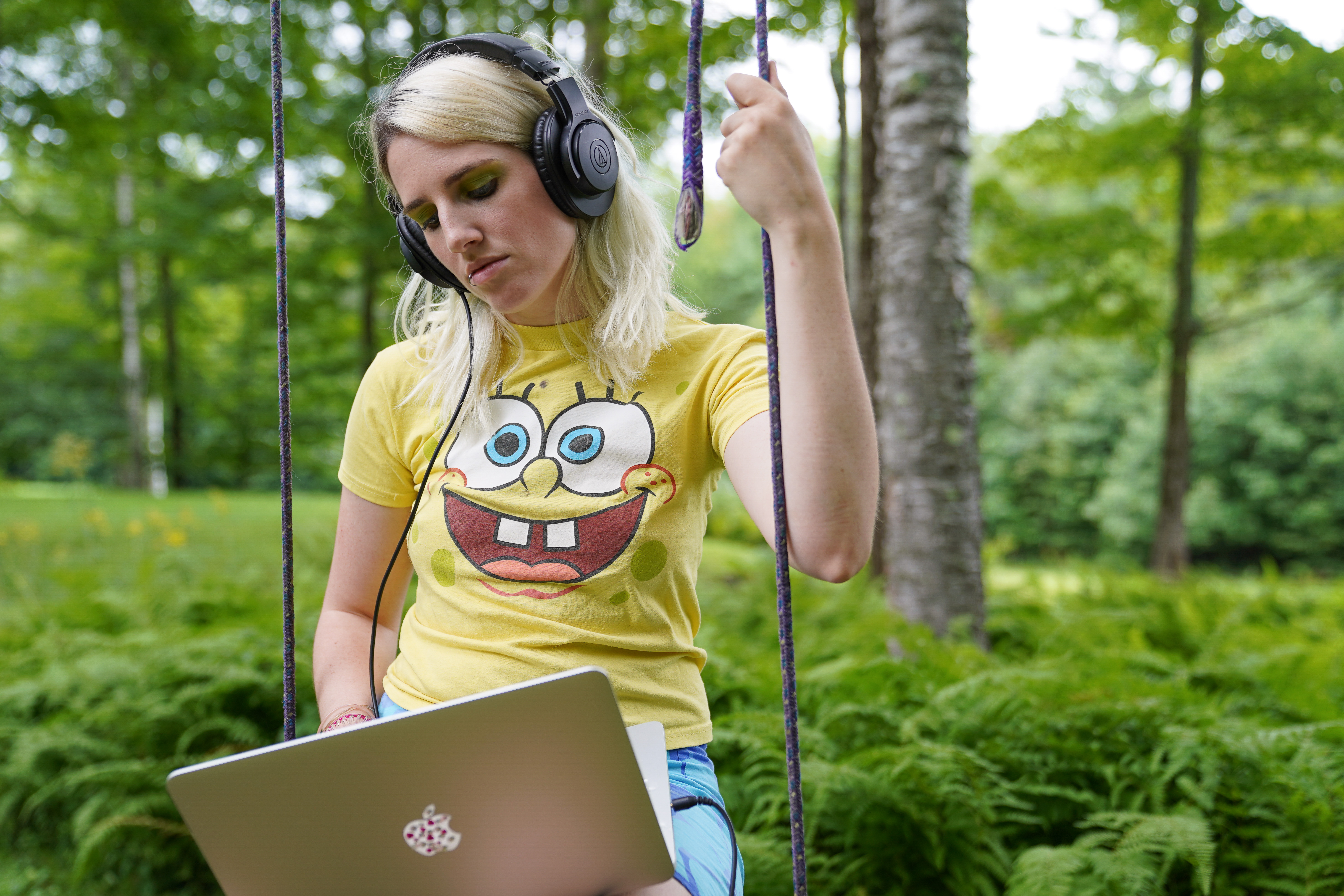 At that point, she realized she really did want to make music, but didn’t have the money or support to do it in the city. So she moved back home. She set up this studio and taught herself how to record and produce her own tracks. The style is a mixture of musical theater, absurdist comedy, and pop.