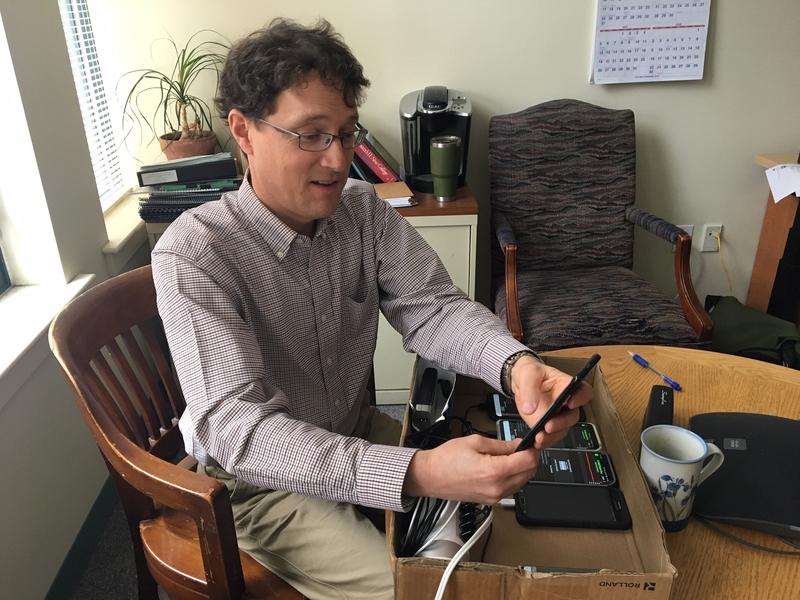 Corey Chase, a state telecommunications infrastructure specialist, went on a road trip to ground-truth cell carriers’ claims about coverage. Photo by John Dillon for VPR