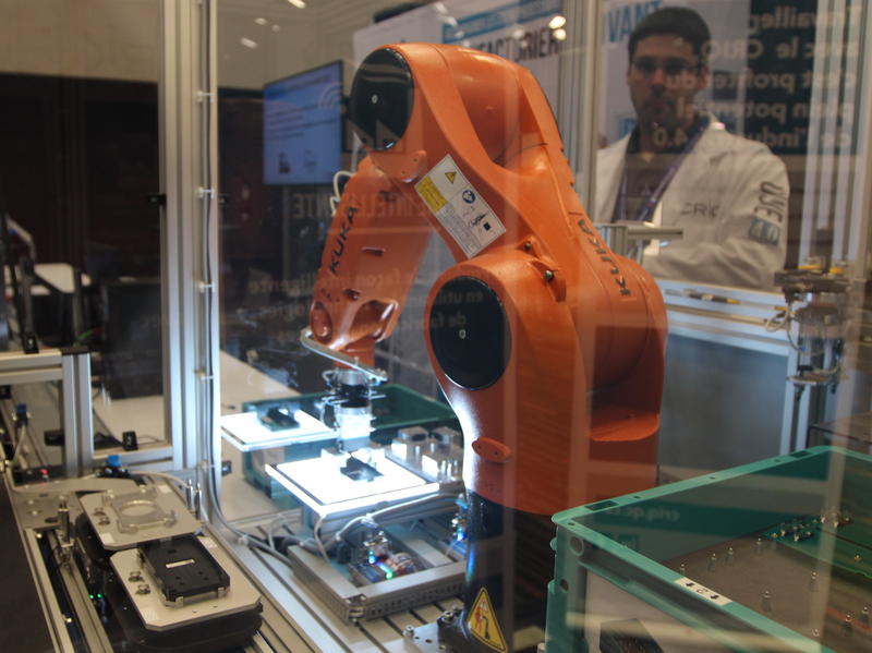 The Montreal Aerospace Innovation Forum is the industry’s stage for promoting new art products and improved manufacturing processes. This robotic arm is used in multiple applications. Photo by Lorne Matalon for VPR