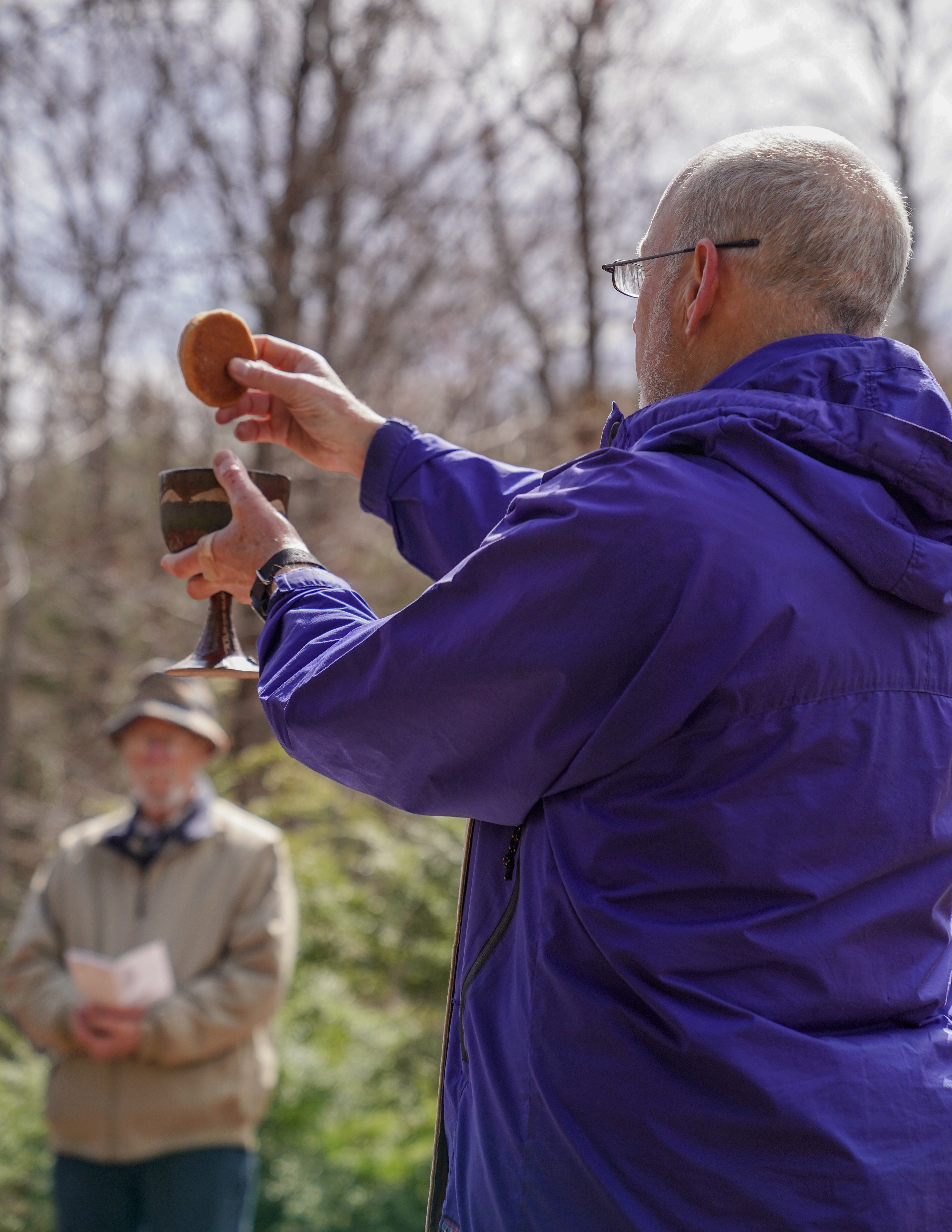 “Our practice at Church of the Woods is that the first piece of Christ’s body, of the bread, is offered back to the earth herself, in recognition that this meal is intended to heal the whole world, and not only the human beings,” says Blackmer. “And the second bit goes to our faithful Molly. And then we pass around the bread and the wine and we serve each other.”